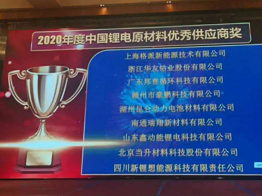 9月16日至18日,百川盈孚主辦的第五屆國際鋰電產(chǎn)業(yè)鏈峰會在成都召開。會議匯聚了鋰電產(chǎn)業(yè)鏈上下游企業(yè),并于9月17日晚舉行了行業(yè)評選頒獎儀式。上海格派新能源技術(shù)集團(tuán)有限公司被評為“2020年度中國鋰電原材料優(yōu)秀供應(yīng)商"。