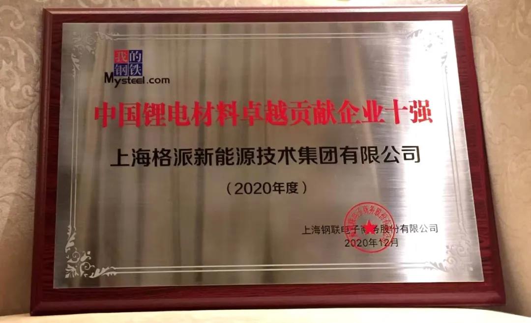 12月2日至3日,2021年Mysteel鎳·鉻·不銹鋼及新能源年會在無錫召開。上海格派新能源技術(shù)集團(tuán)有限公司榮獲“中國鋰電材料卓越貢獻(xiàn)企業(yè)十強”和“中國鈷鋰原料杰出新秀企業(yè)十強”兩項獎項。